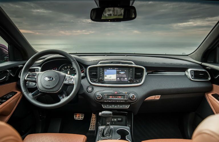 Приборная панель типична для Kia, то есть очень похожа на Audi, с разумно расположенными элементами управления, которые легко работают. Большие аналоговые датчики четкие и четкие, с удобной панелью приборов наблюдения с цветным дисплеем (причудливое название), а информационно-развлекательная система представляет собой образец удобства и быстрой настройки.